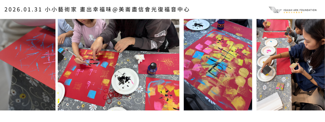 1/30 的「小小藝術家」活動,孩子們用畫筆為災後家園添上「幸福味」 。